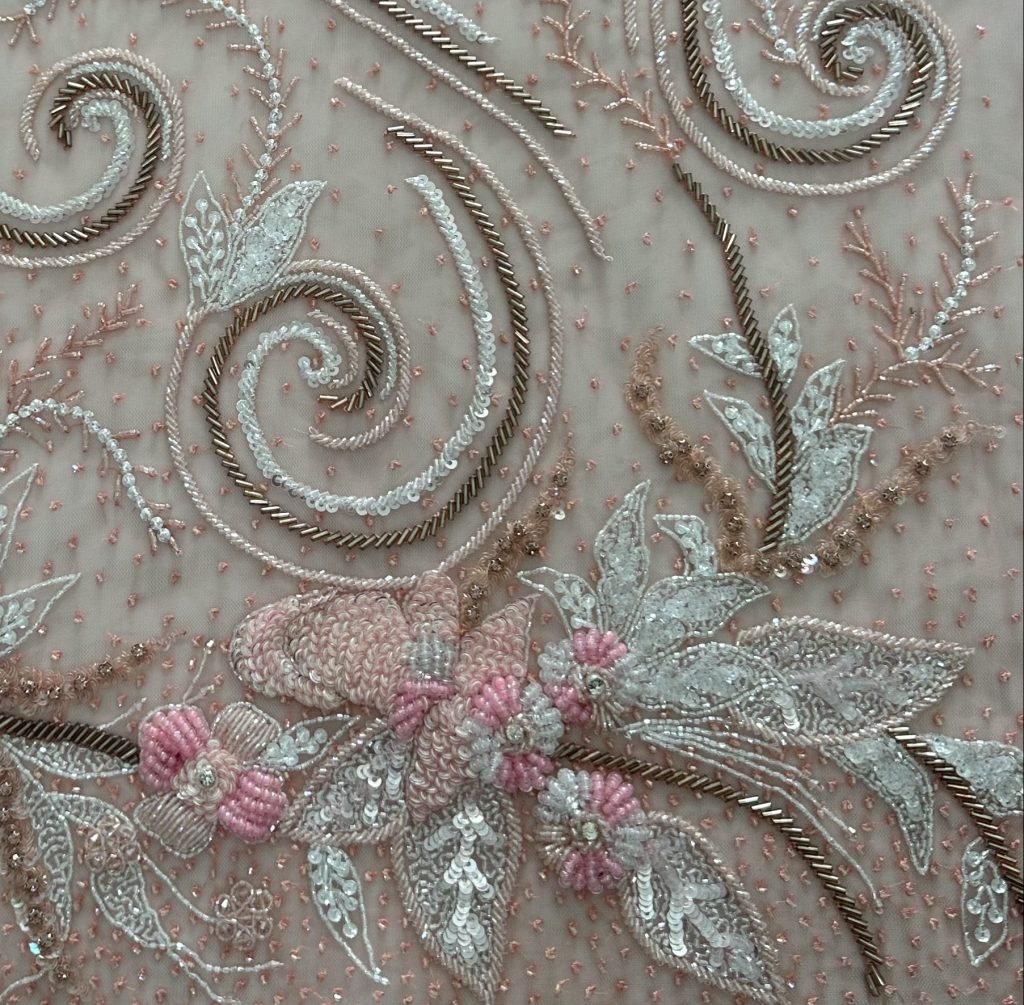 With a focus on customized embroidery, we work closely with designers to achieve exceptional outcomes in design, quality, and cost-effectiveness. Alifya Ansari prides itself on having specialized teams for garment, headpieces, veils, beaded fabrics, and appliqué patches.